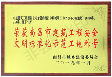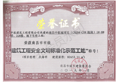 南昌市市級(jí)“建筑工程安全文明標(biāo)準(zhǔn)化示范工地”稱號(hào)。