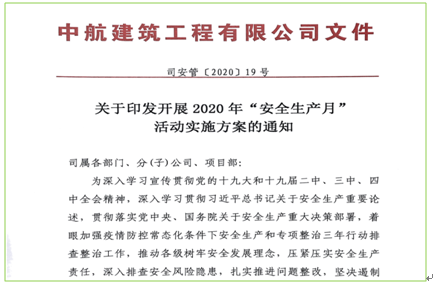 中航建筑工程有限公司2020年“安全生產(chǎn)月”活動總結