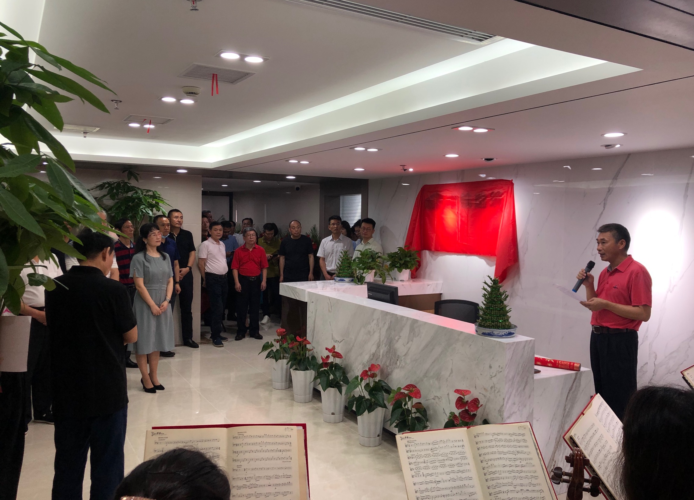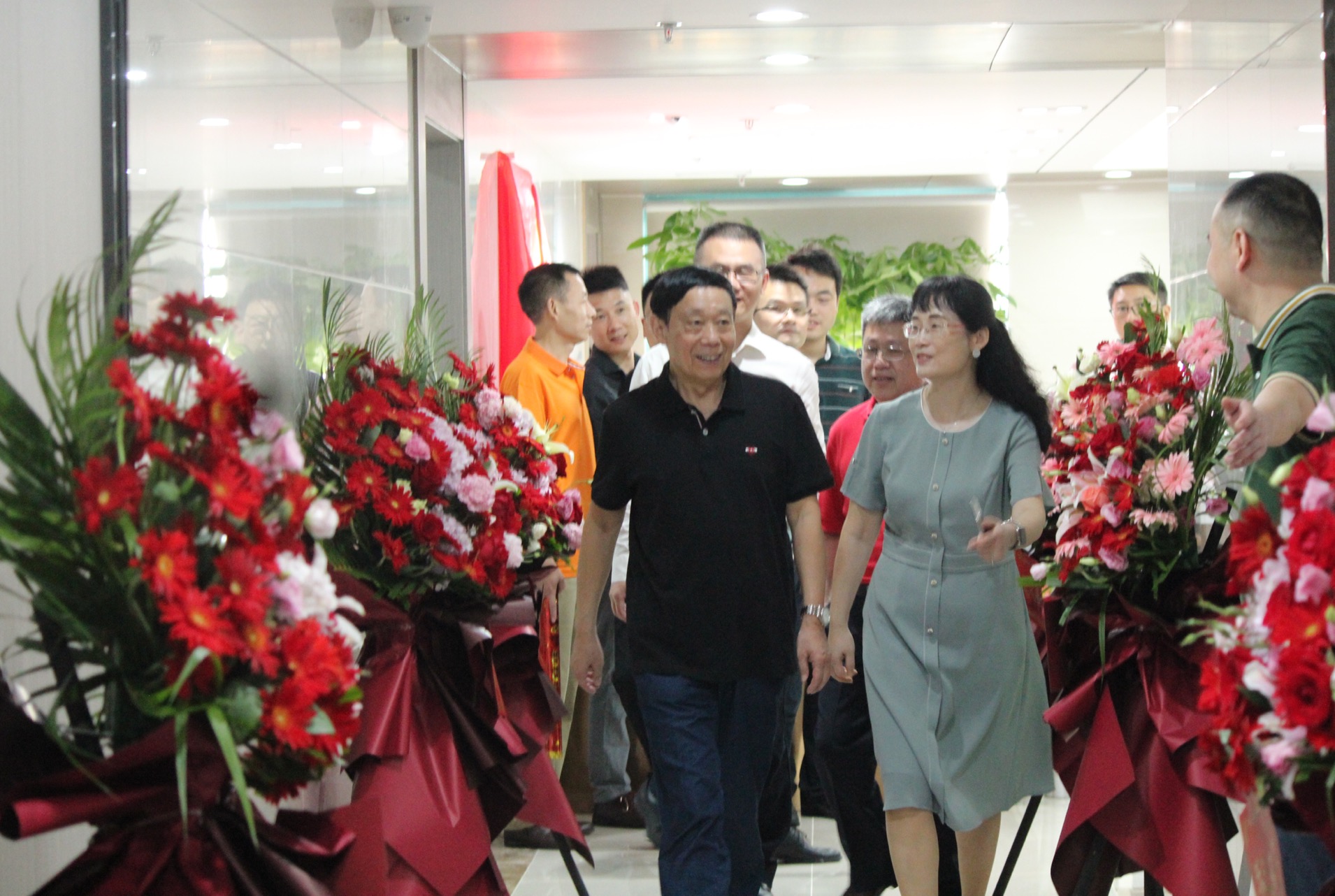 十一時(shí)十八分,伍總和譚副主席、謝校長(zhǎng)、談總、周總一起,徐徐揭下了公司牌匾上的紅綢。