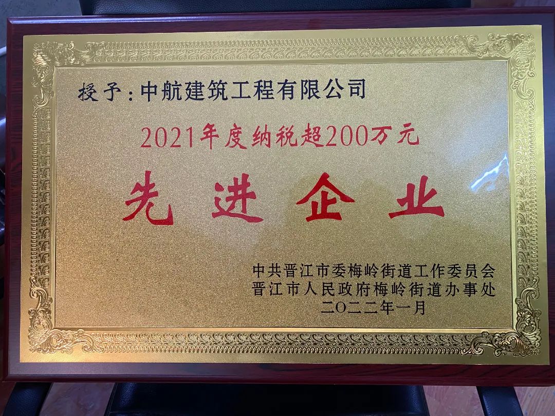 恭喜公司獲得2021年度晉江市納稅先進企業(yè)!