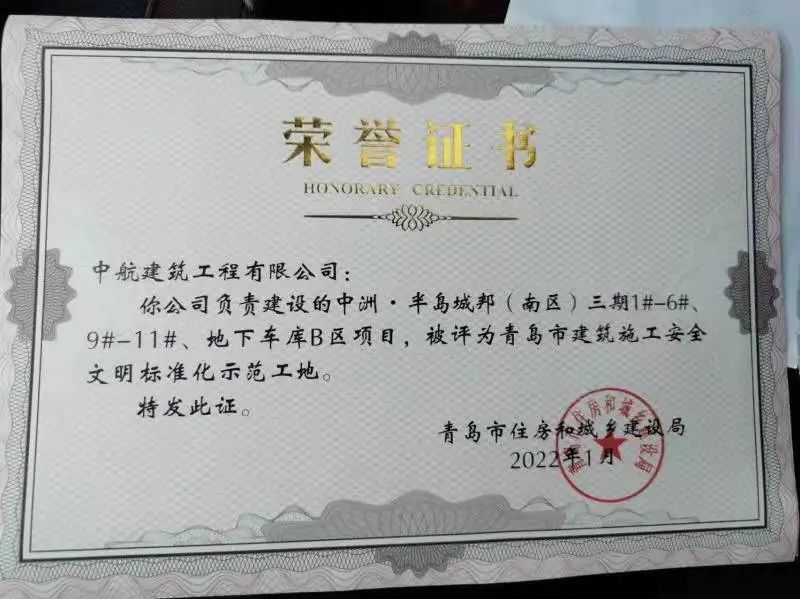 中洲·半島城邦,自開工以來,項目深入踐行精細(xì)化管理,嚴(yán)格推動施工安全生產(chǎn)標(biāo)準(zhǔn)化,文明施工管理和揚(yáng)塵防控工作,成功在青島市樹立標(biāo)桿!由青島市城鄉(xiāng)建設(shè)局對施工現(xiàn)場質(zhì)量安全體系、安全生產(chǎn)管理、文明施工、質(zhì)量管理、工程監(jiān)理、建筑隊伍管理、綠色施工、工程創(chuàng)新、雙重預(yù)防體系建設(shè)等9個方面進(jìn)行評價后,公布了2021年青島市建筑施工安全文明標(biāo)準(zhǔn)化示范工地名單。其中,我司承建的中洲·半島城邦(南區(qū))三期1#-6#樓、9#-11#、地下車庫B區(qū)項目獲評“青島市建筑施工安全文明標(biāo)準(zhǔn)化示范工地”。